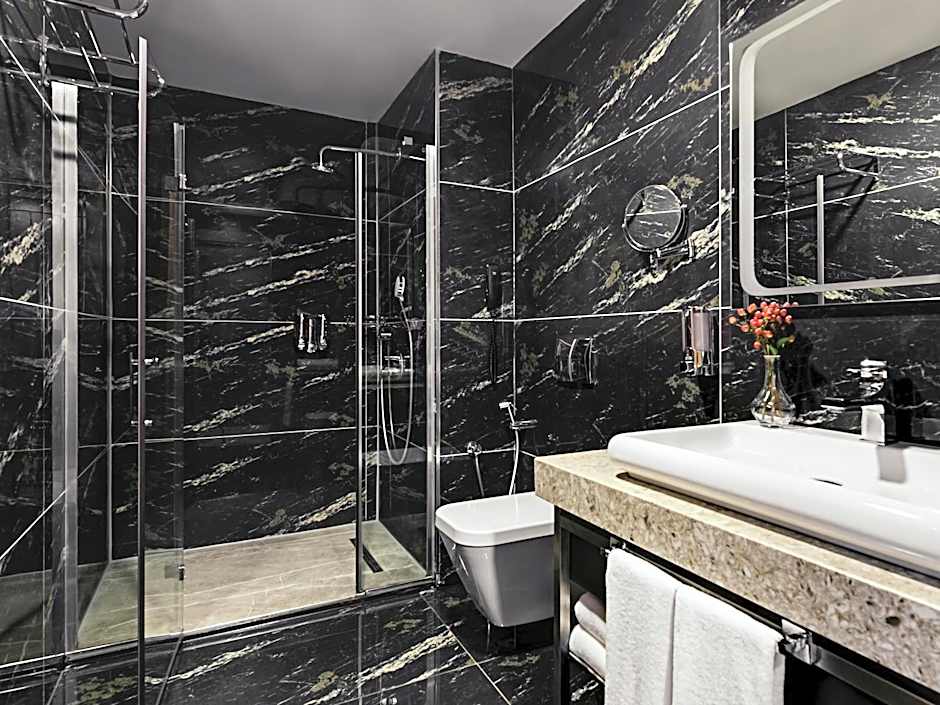 The spacious suite features air conditioning, a wardrobe and a balcony.